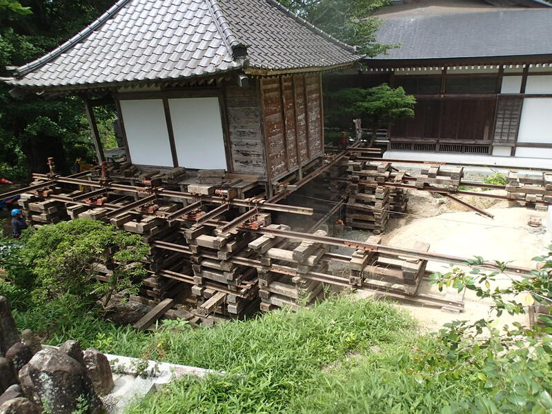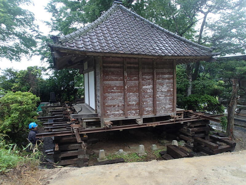 阿弥陀寺本堂のとなりにある御堂を基礎改修と敷地の有効利用のため、隣地(高低差2m)に15m移動することになりました。
